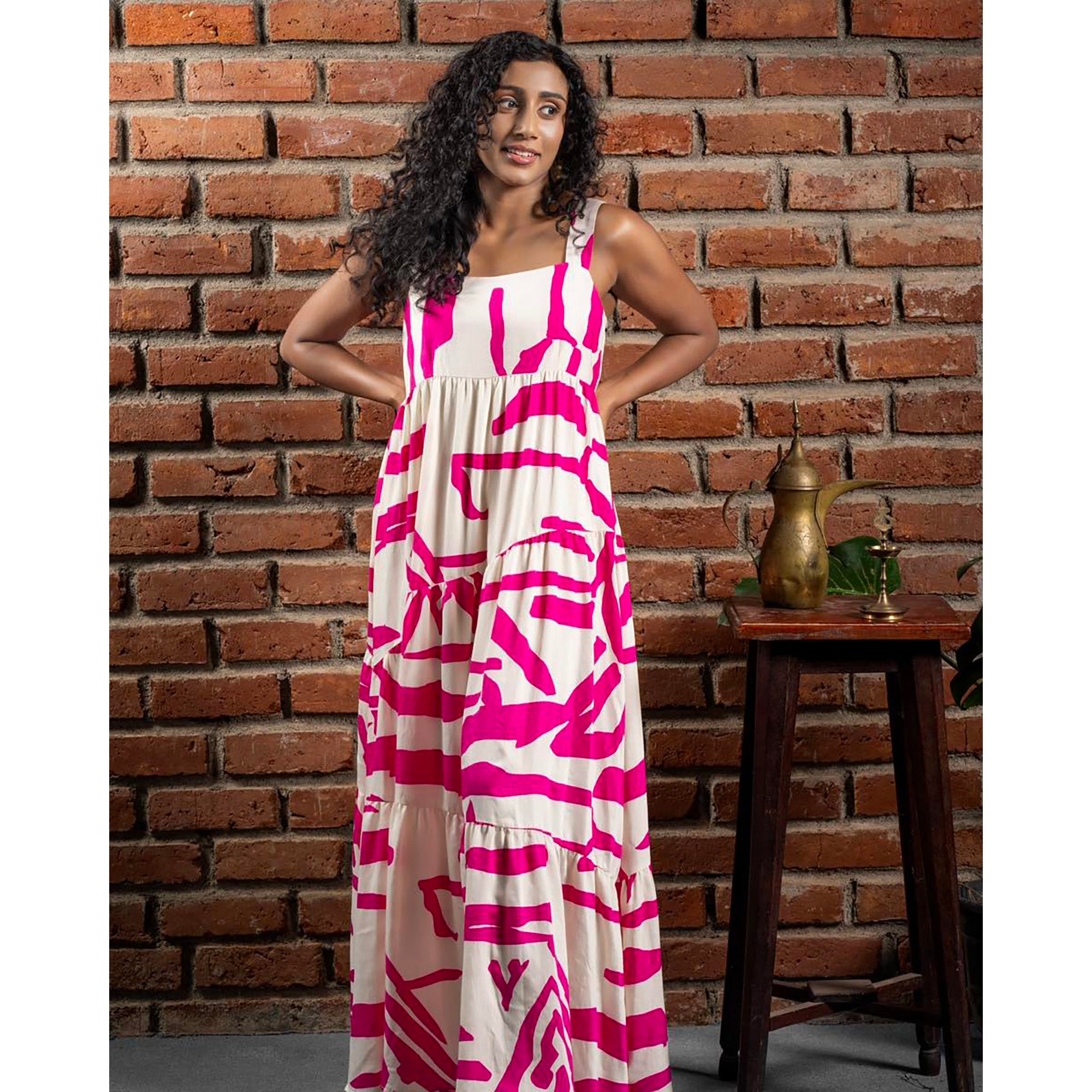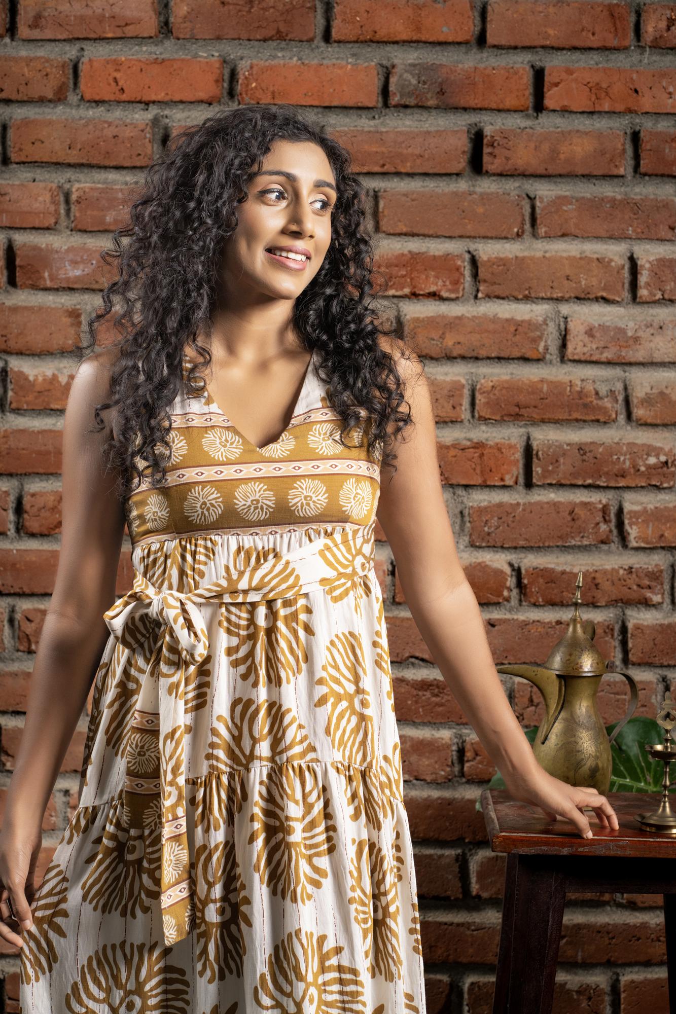 A Long Dress In Warm, Earthy Tones With Subtle Patterns For A Natural, Effortless Look. Comfortable And Stylish, Perect For Relaxed Gatherings.