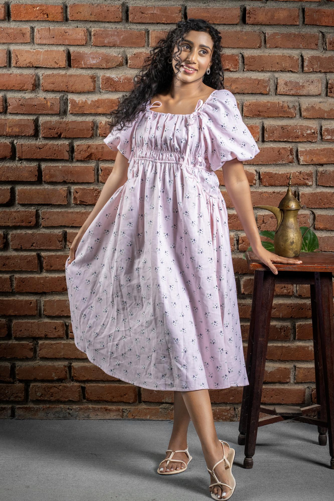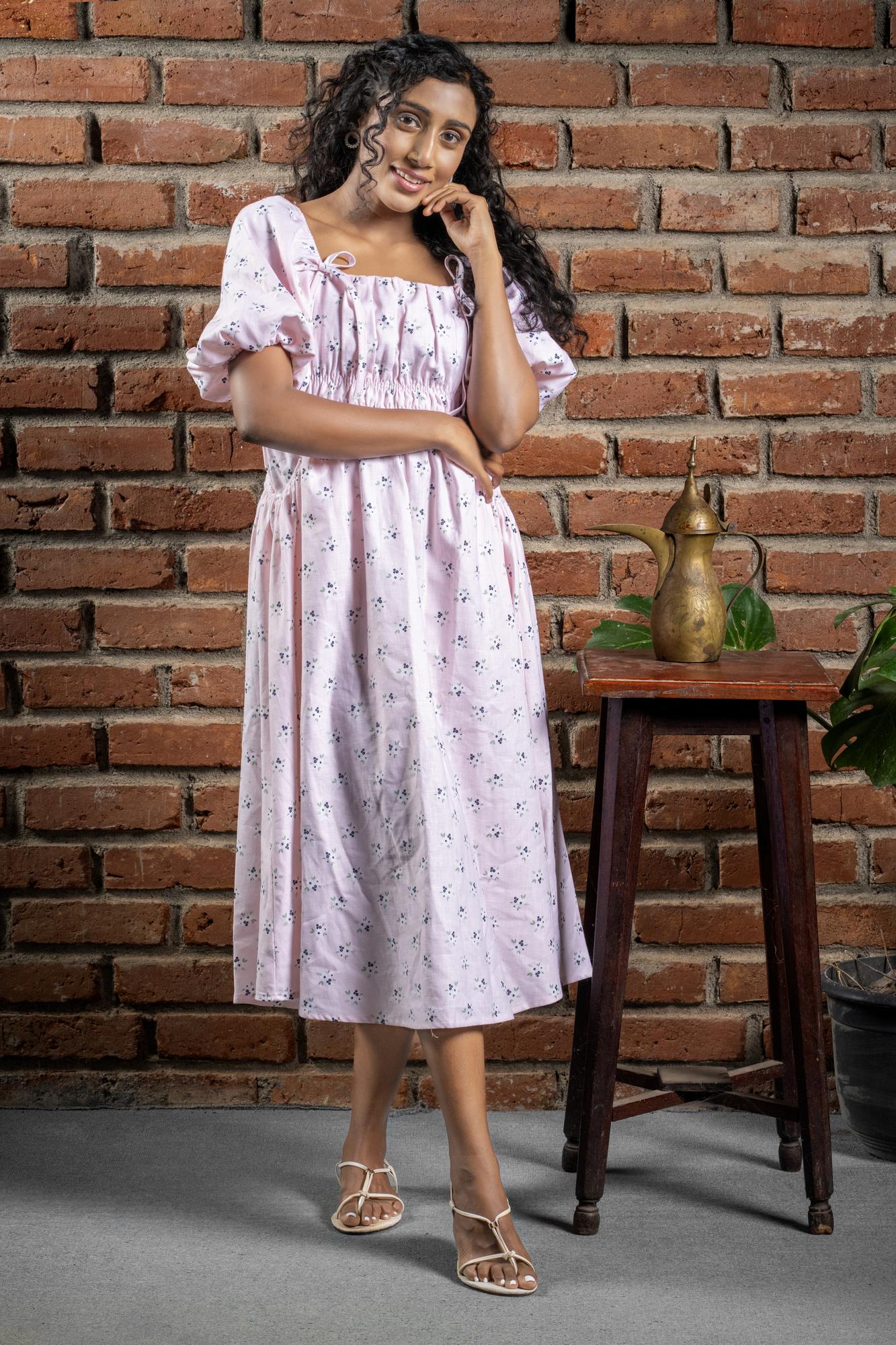 A Delicate Cherry Blossom Dress Adorned With Tiny Floral Prints. Light, Breezy And Perfect For Adding A Soft, Feminine Touch To Your Everyday Wardrobe.