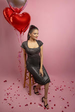 A Dazzling Black Simmer Party Dress Designed To Catch The Light And Turn Heads. Elegant And Glamorous, Perfect For Evenings Filled With Style.