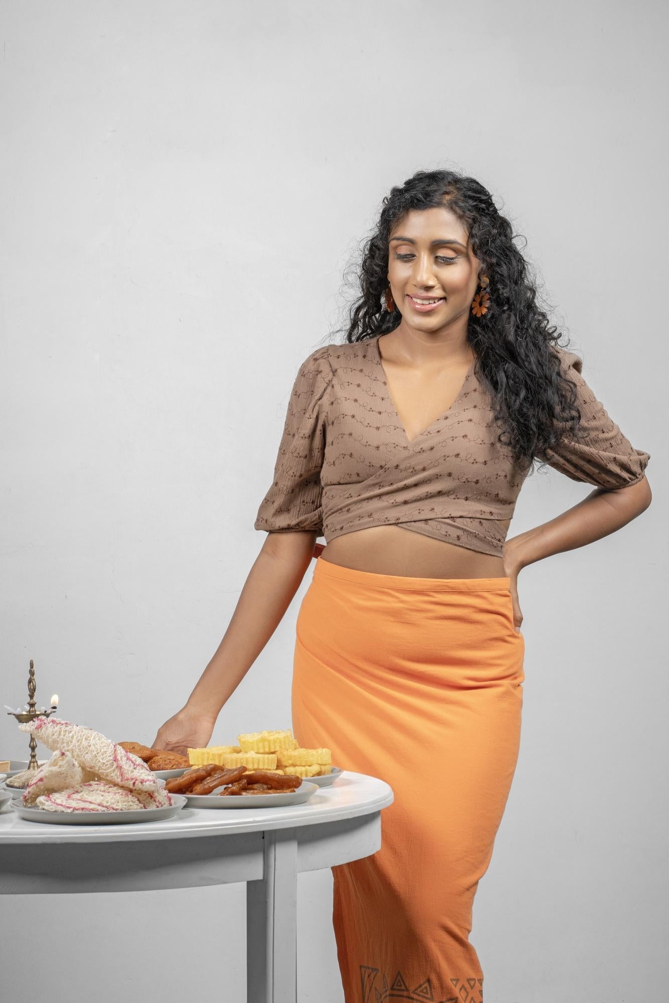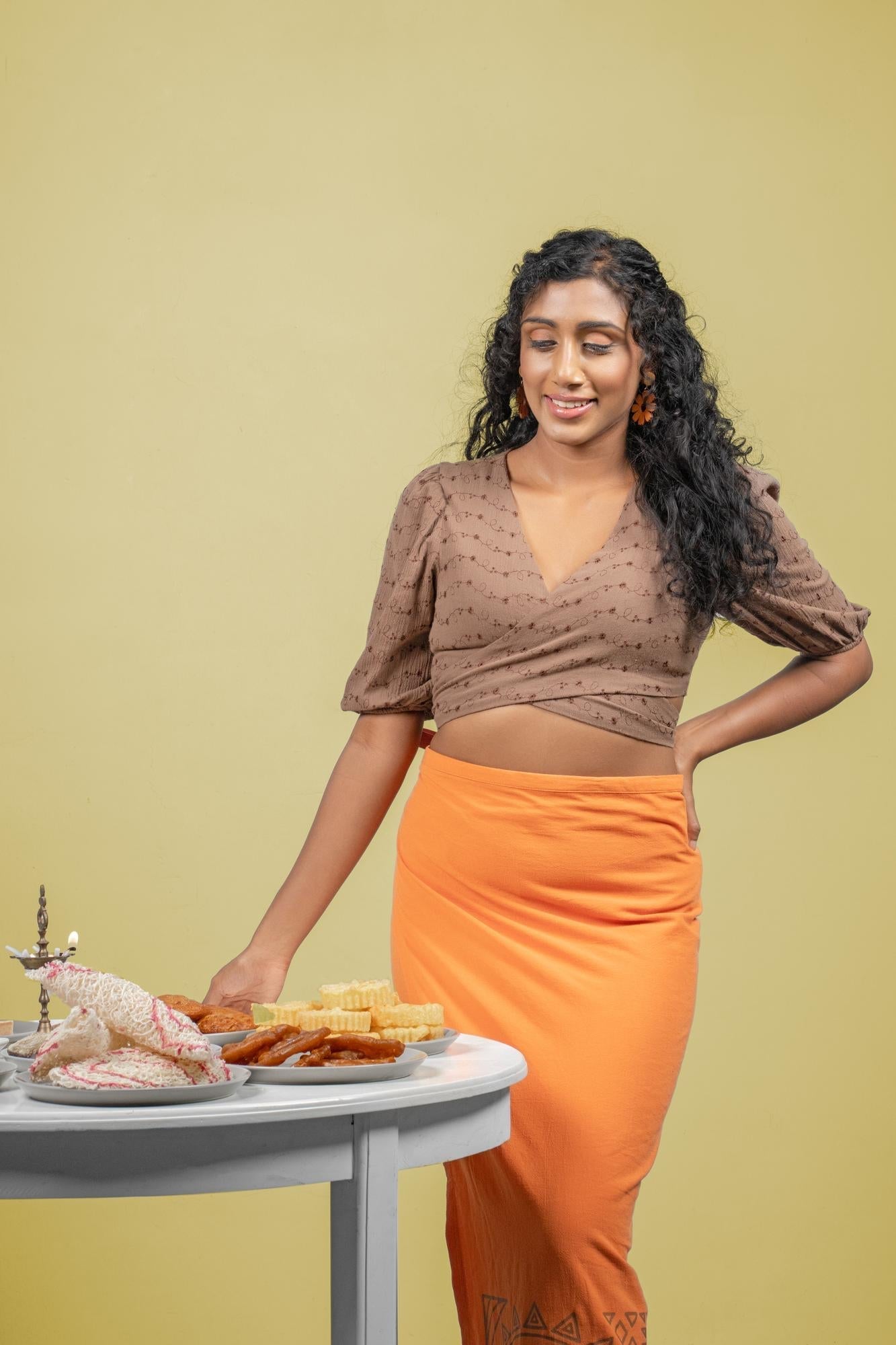 A Tortilla Brown Crop Top Designed For Effortless Style. Comfortable, Versatile And Perfect For Pairing With Skirts Or Jeans.