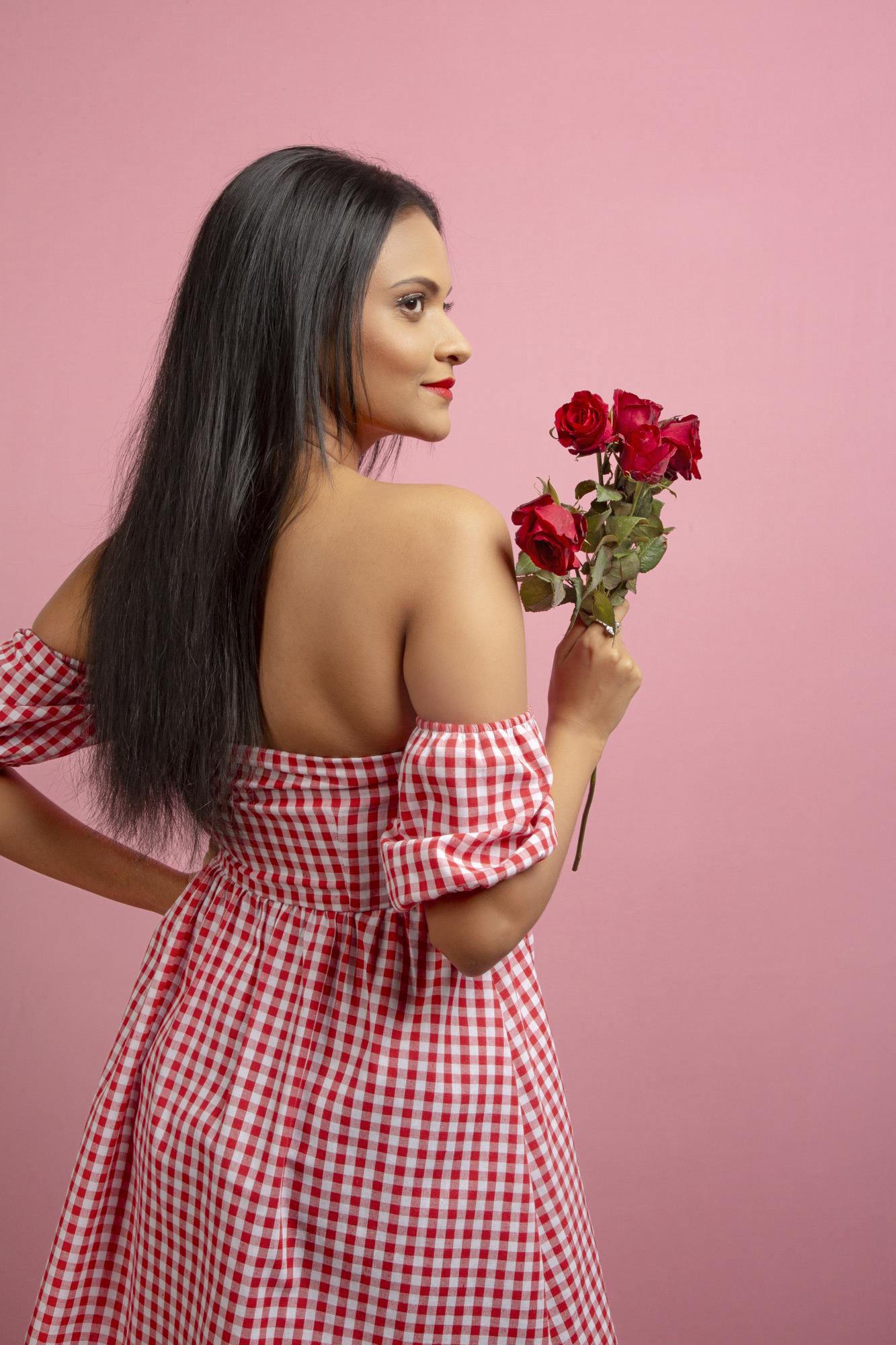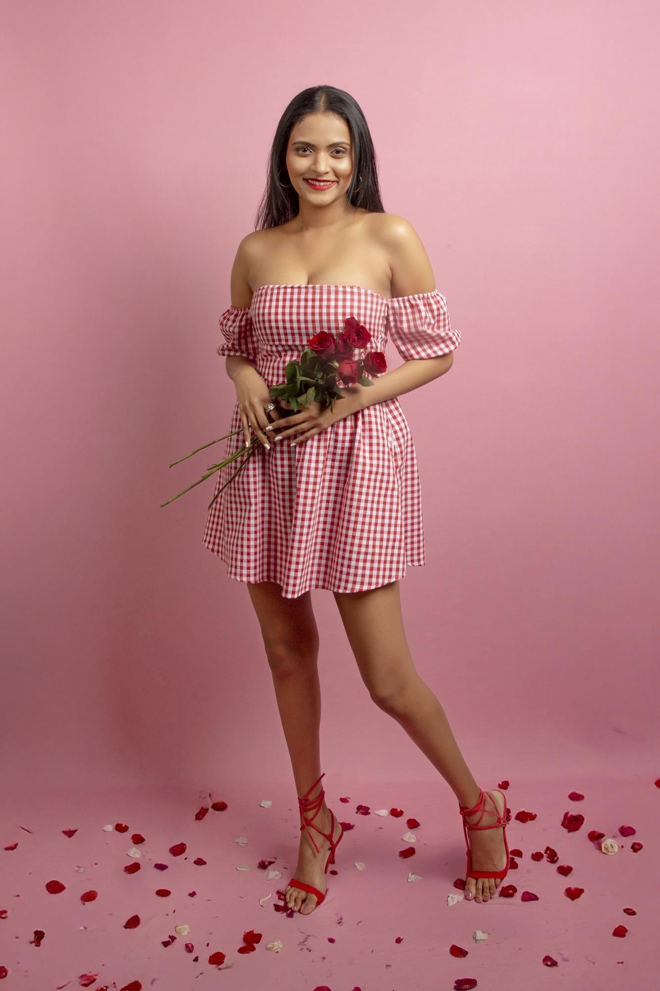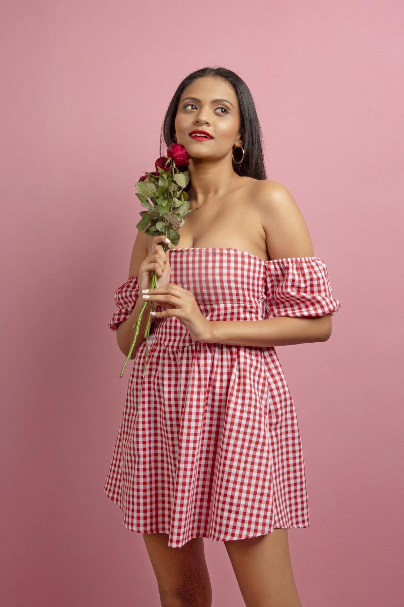A Crimson Red And White Check Frock Designed For Casual Charm. Lightweight, Comfortable And Perfect For Everyday Wear With A Touch Of Timeless And Effortless Flair.