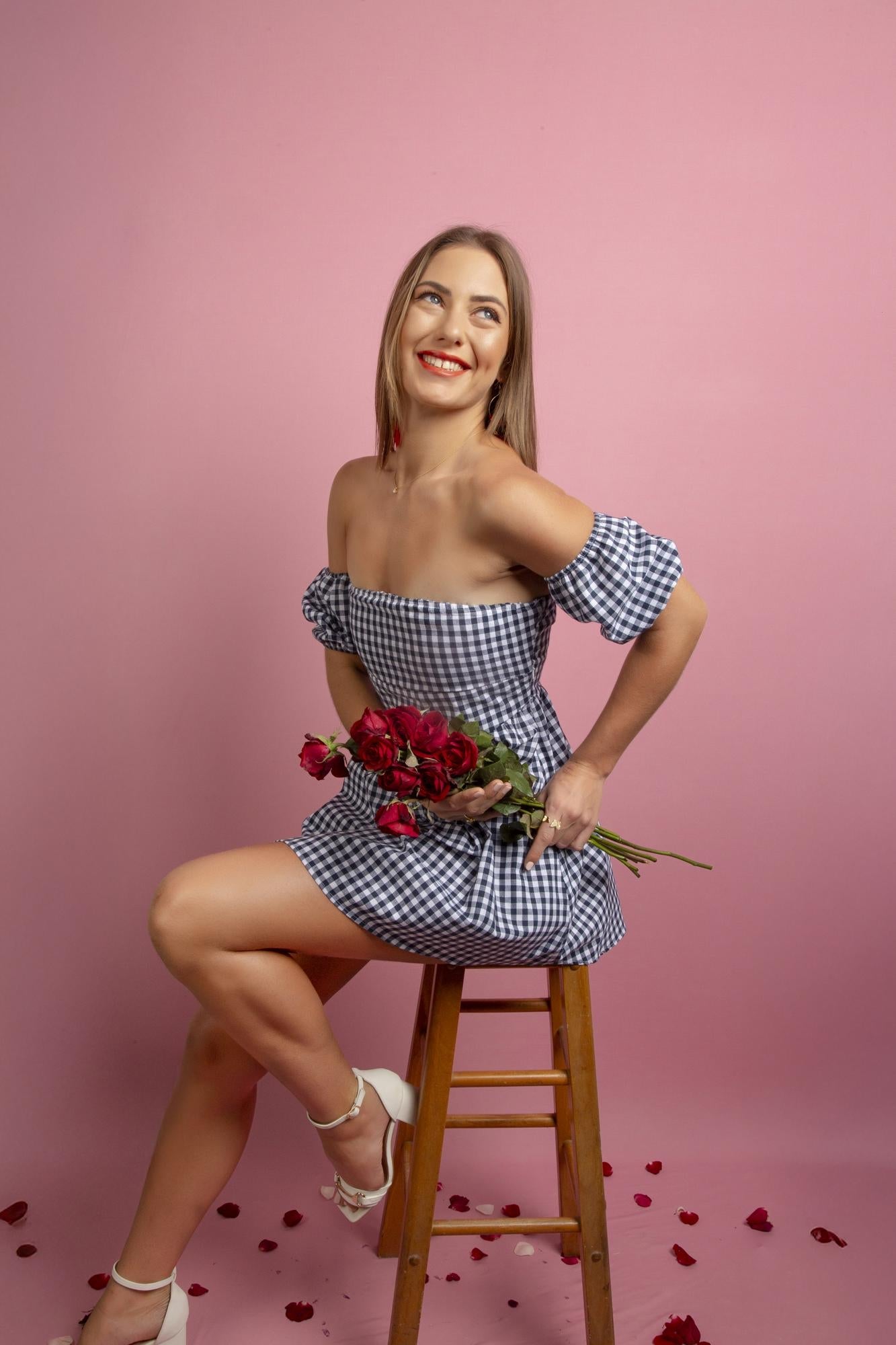 A Cobalt Blue And White Check Frock Designed For Casual Charm. Lightweight, Comfortable And Perfect For Everyday Wear With A Touch Of Timeless And Effortless Flair.